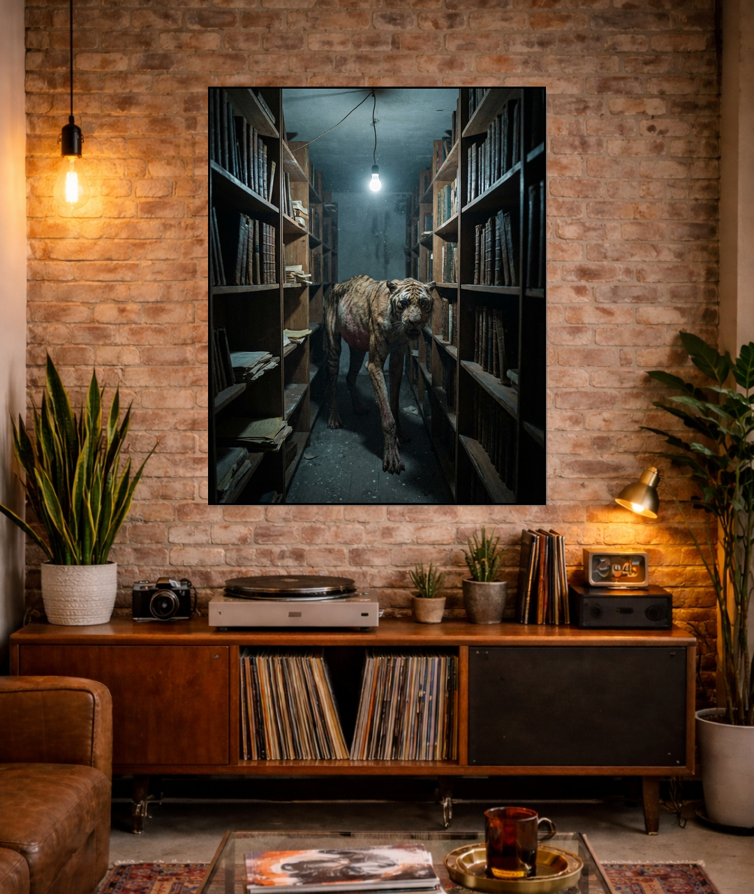 Immerse yourself in the chilling world of photorealistic horror with 'Distended Terror,' a visceral art print that redefines macabre beauty. This striking piece meticulously captures a monstrous tiger creature, its formidable form grotesquely transformed by a distended abdomen, hinting at an unsettling, unknown horror within. The hyper-detailed rendering brings every ripple of muscle, stretch of skin, and glint in its predatory eyes to startling life, making the horror undeniably real. Collectors drawn to the darker side of art will appreciate the masterful technique and psychological depth, inviting contemplation of themes such as mutation, consumption, and the grotesque sublime. This art print is a provocative statement piece, perfect for those who seek to challenge perceptions and embrace the unsettling power of expertly crafted fear.